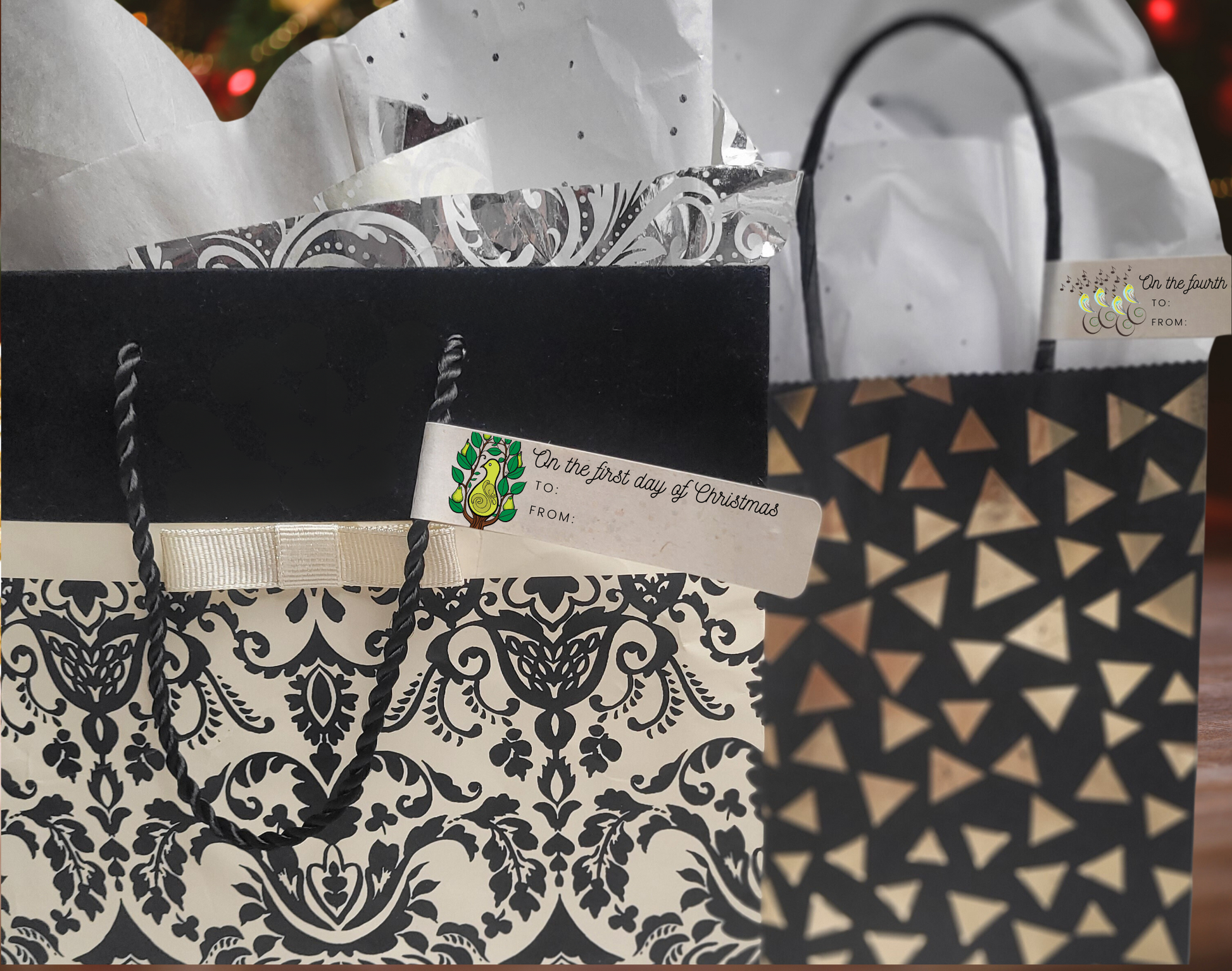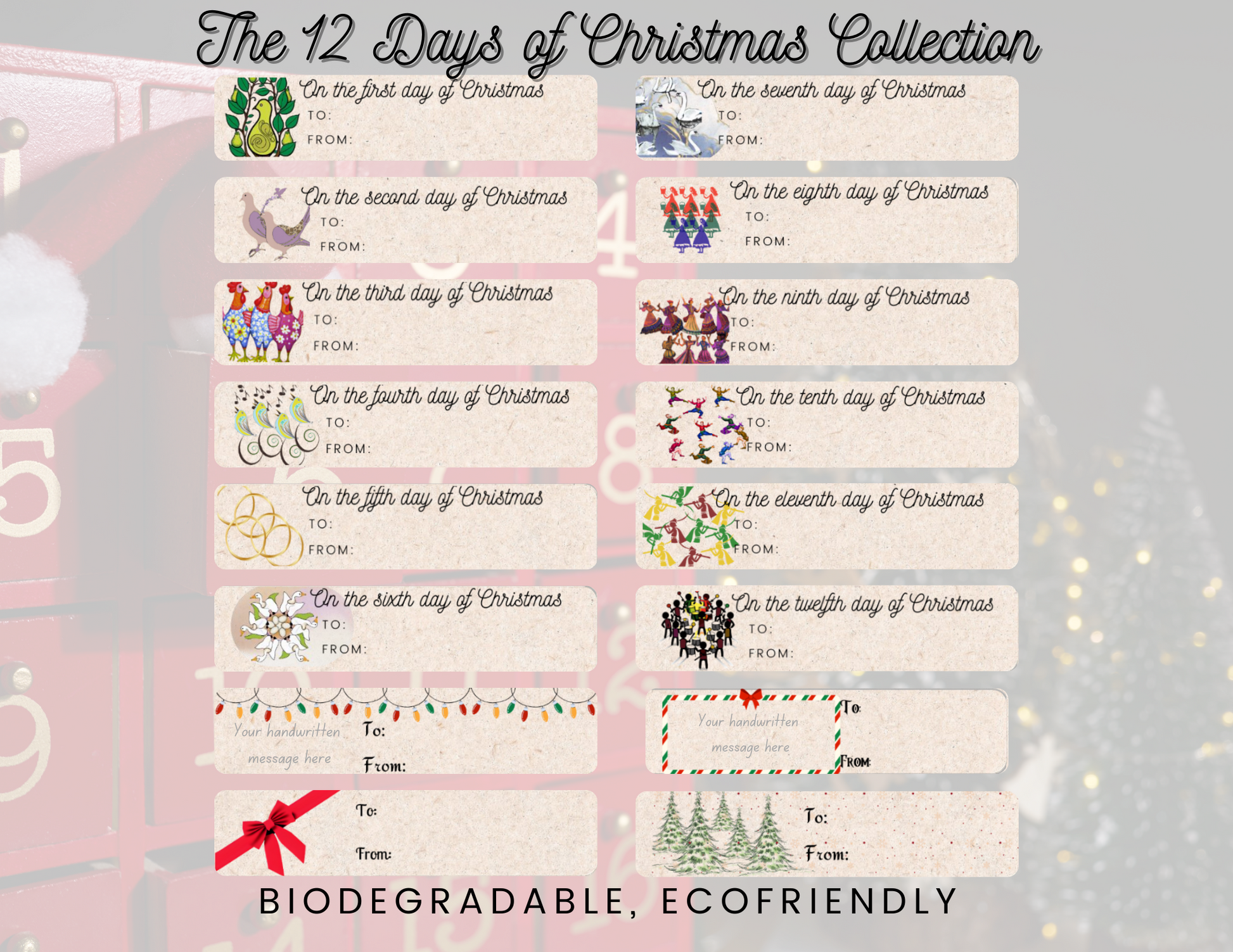 Christmas Gift Labels with the 12 Days of Christmas Designs - Eco-Friendly, Biodegradable