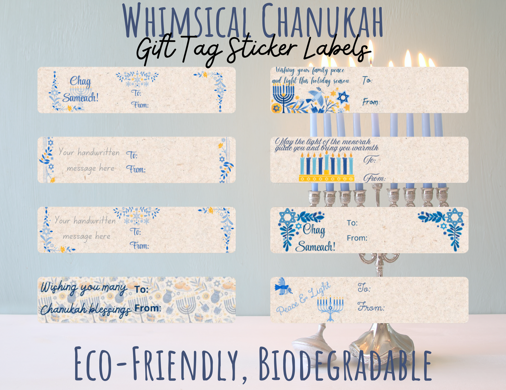 Eco-Friendly Chanukah Gift Stickers - Biodegradable, Whimsical Designs