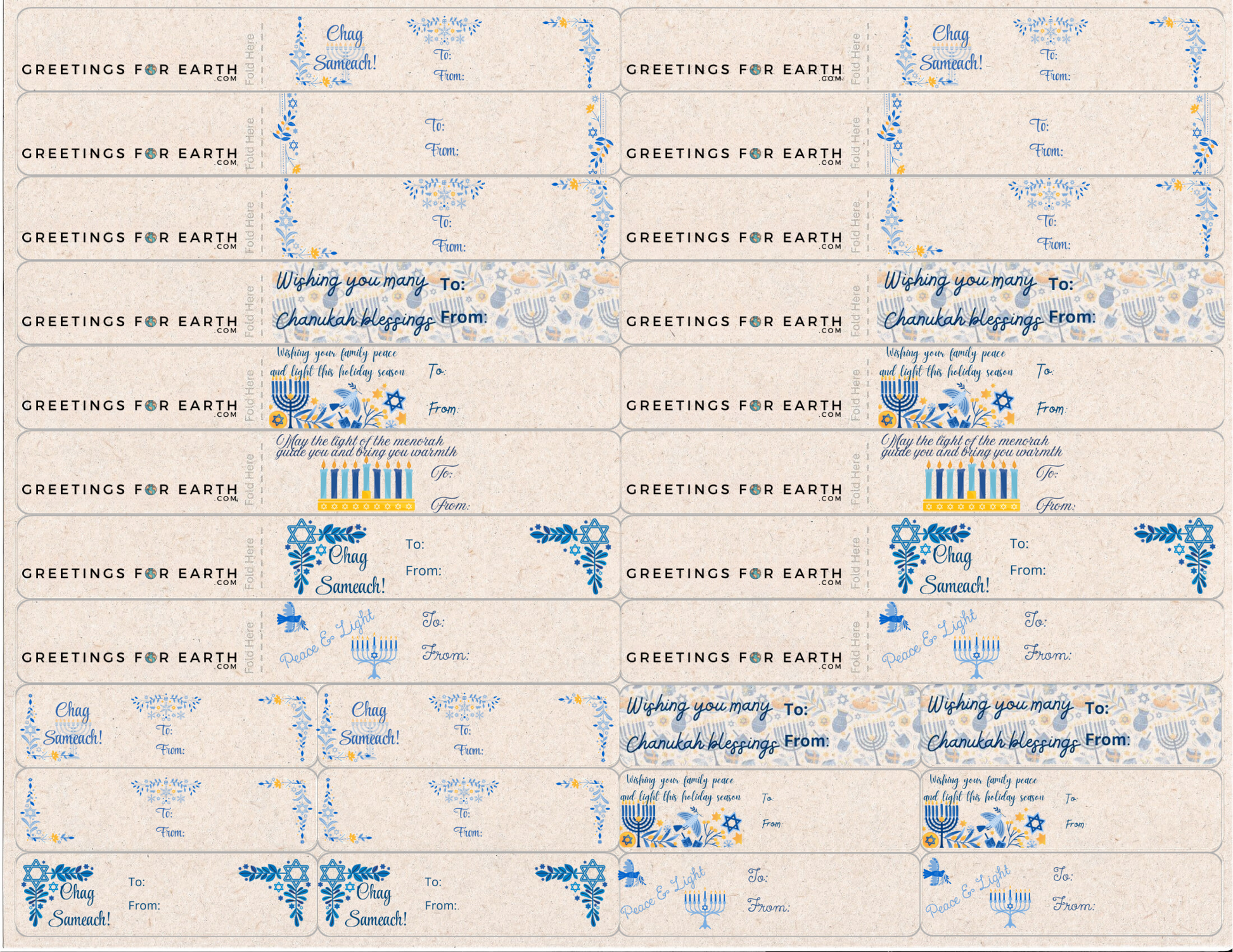 Spread holiday cheer with our whimsical designs for Chanukah! Featuring 28 gift label stickers for the price of one card, it's the eco-friendly choice with compostable materials and less waste. Give your loved ones a sustainable and stylish greeting this season. Now includes labels with space to hand write a personal message!