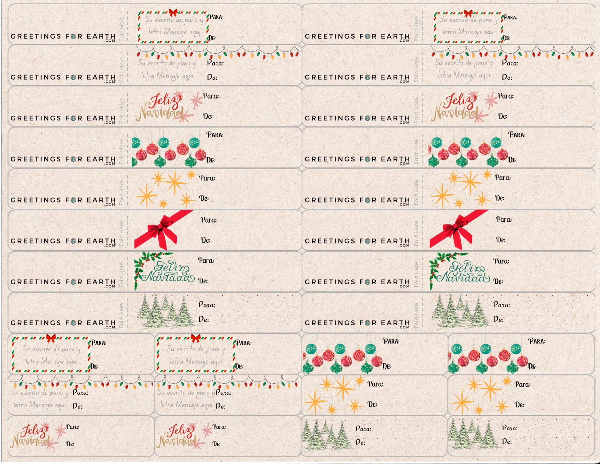¡Difunde la alegría navideña con nuestras clásicas etiquetas de felicitación de Feliz Navidad! Con 28 etiquetas navideñas por el precio de una tarjeta, es la opción ecológica con materiales biodegradables y menos residuos. Dale a tus seres queridos un saludo sostenible y elegante esta temporada. ¡Ahora incluye etiquetas con espacio para escribir a mano un mensaje personal!