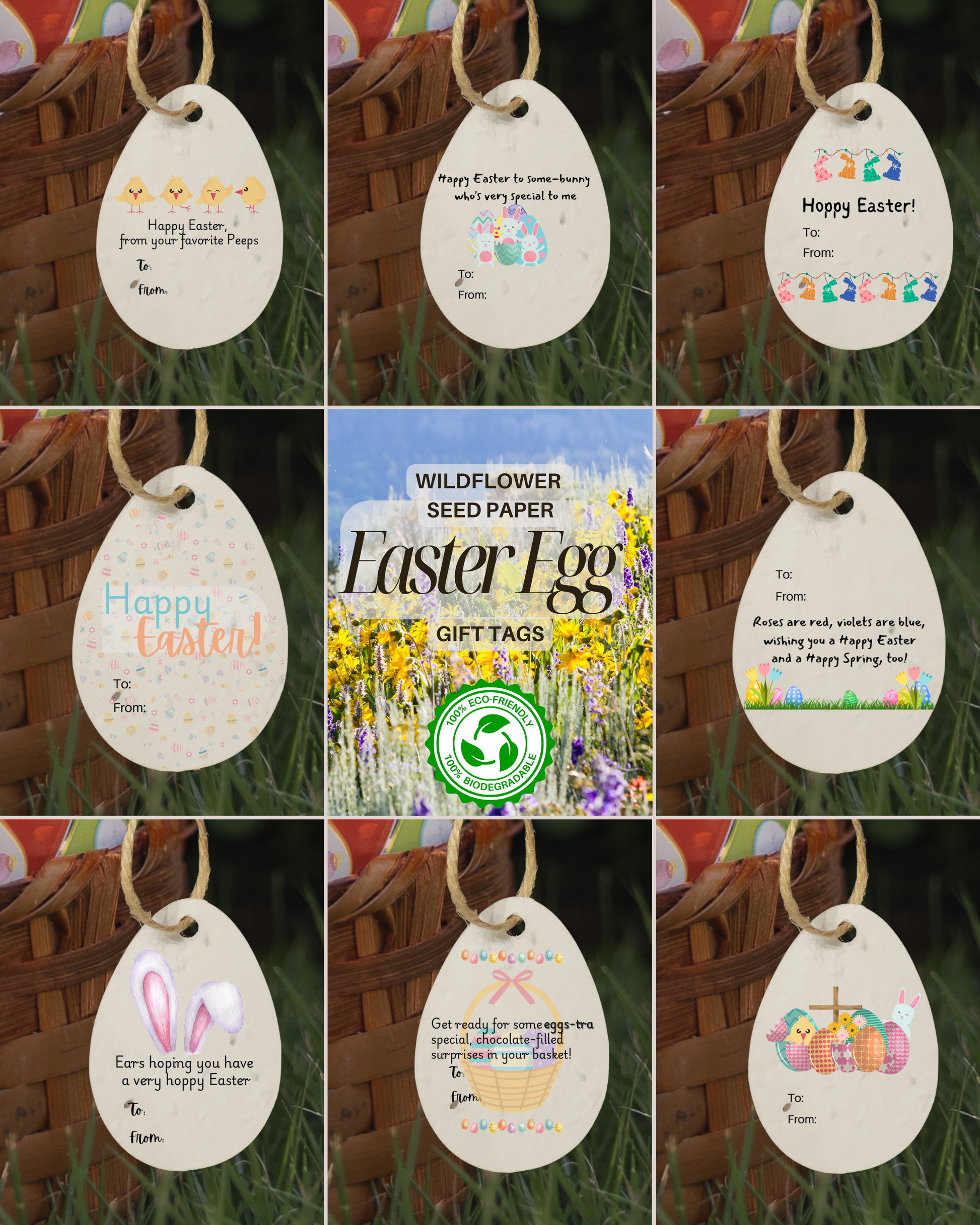 Plantable Wild Flower Seed Paper Easter Egg Gift Tags - A Sustainable Alternative to Greeting Cards (Eco-Friendly)